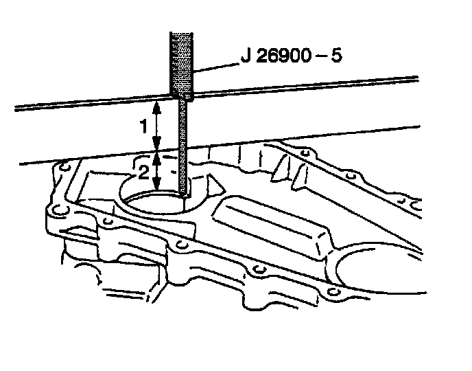 50. Use the J 26900-5 and a straightedge in order to measure the rear case bearing bore depth: