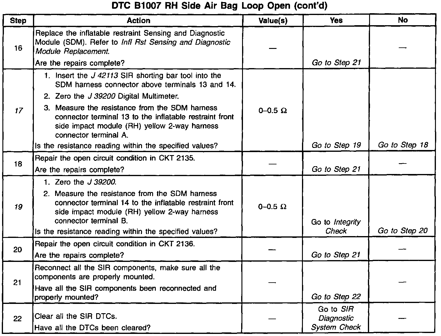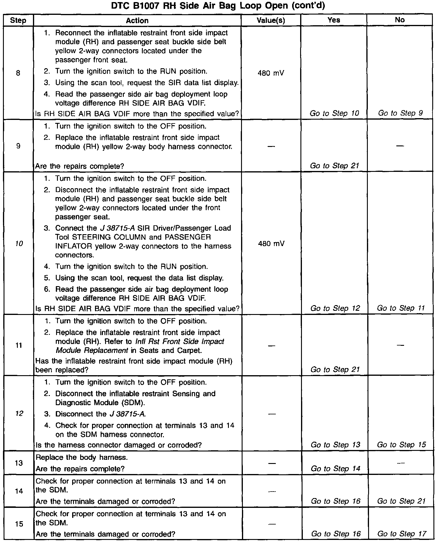 - The passenger side air bag deployment loop resistance is more than 500 ohms.