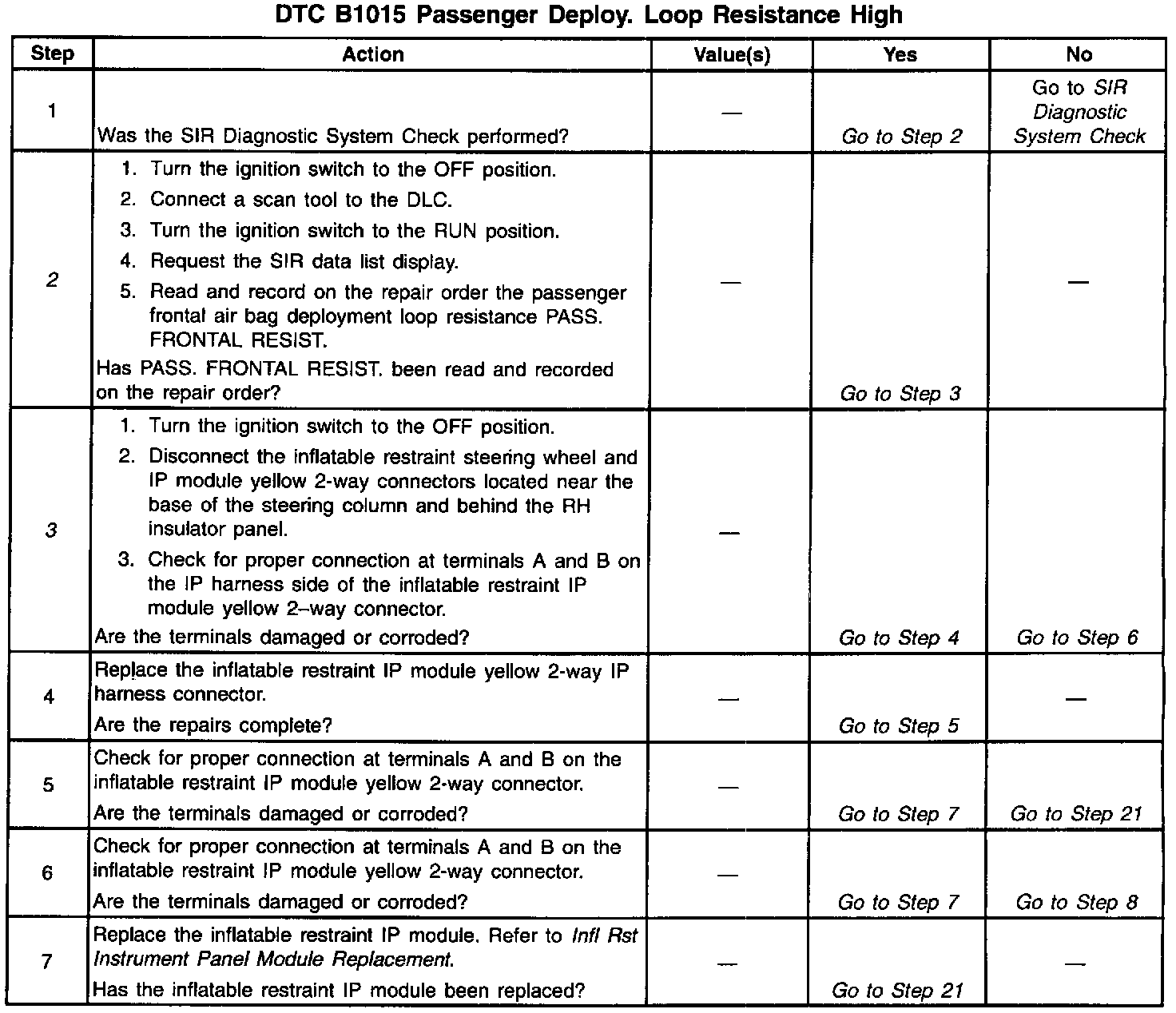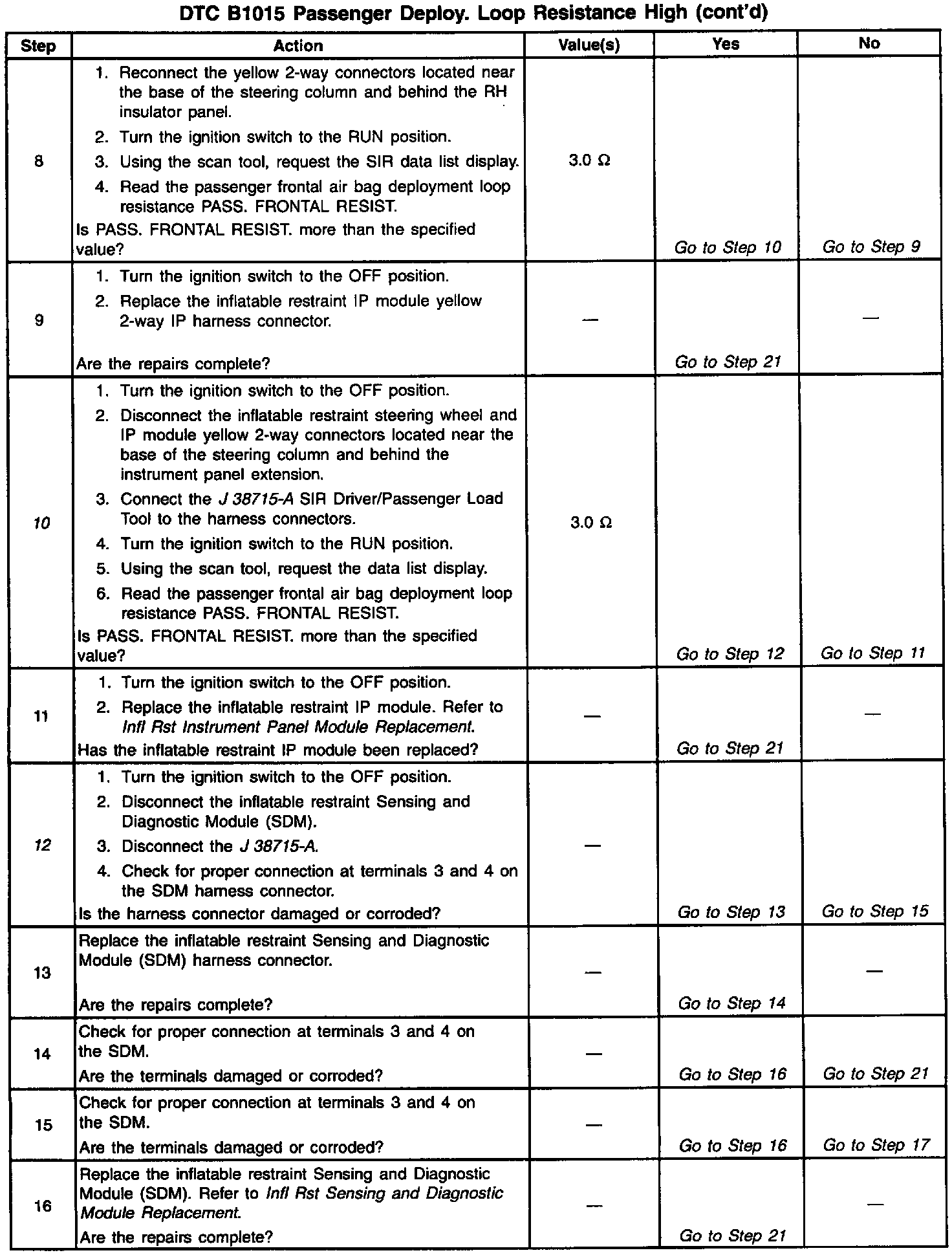 - The passenger frontal air bag deployment loop resistance is more than 8.0 ohms. The passenger deployment loop consists of the following components:
