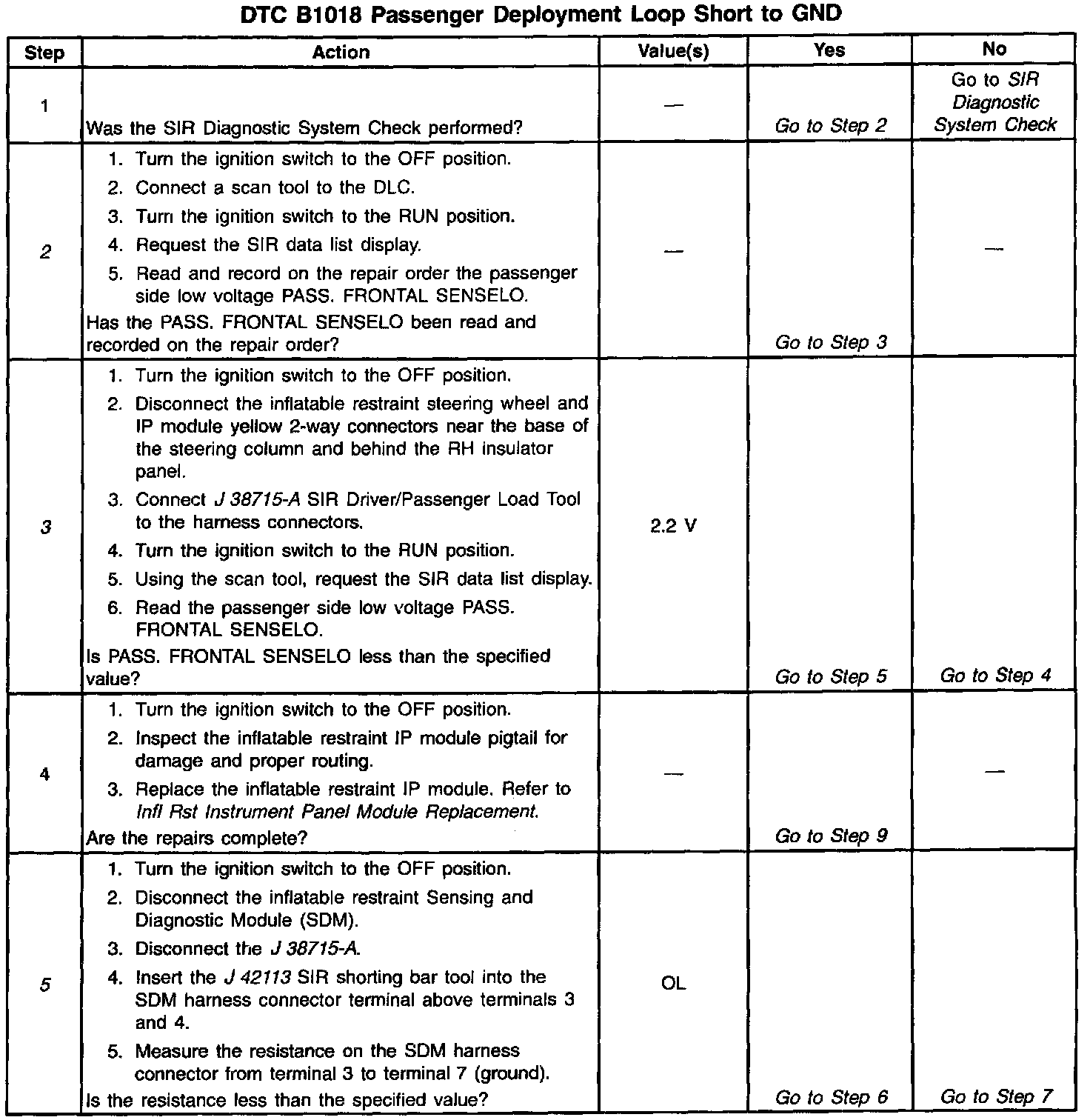 2. This test determines the passenger frontal air bag low voltage measured by the inflatable restraint Sensing and Diagnostic Module (SDM).