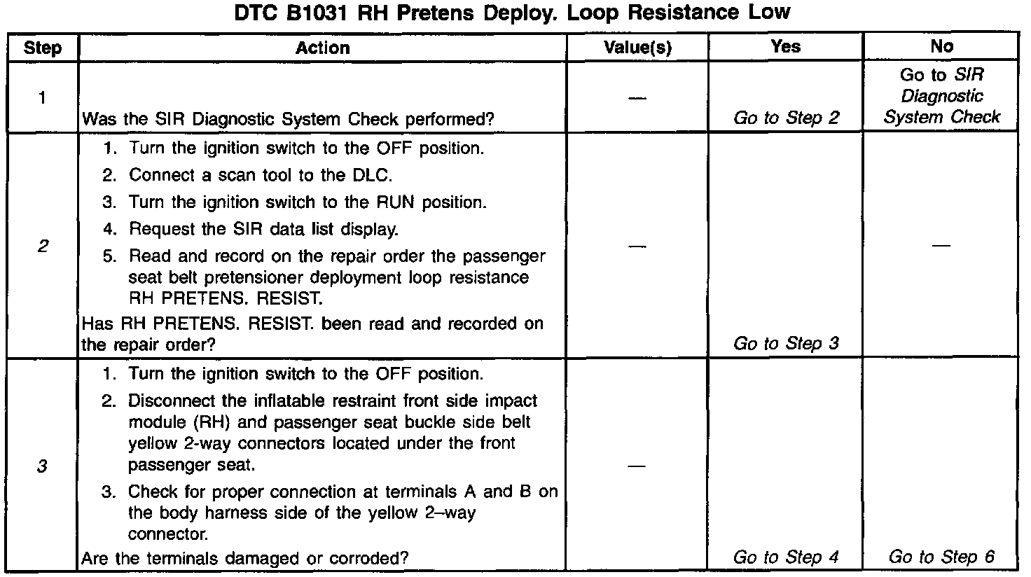 The diagnostic table directs the technician to note the entry value of RH PRETENS. RESIST Comparing the value of RH PRETENS. RESIST over multiple ignition cycles can be helpful in determining if an intermittent condition exists.