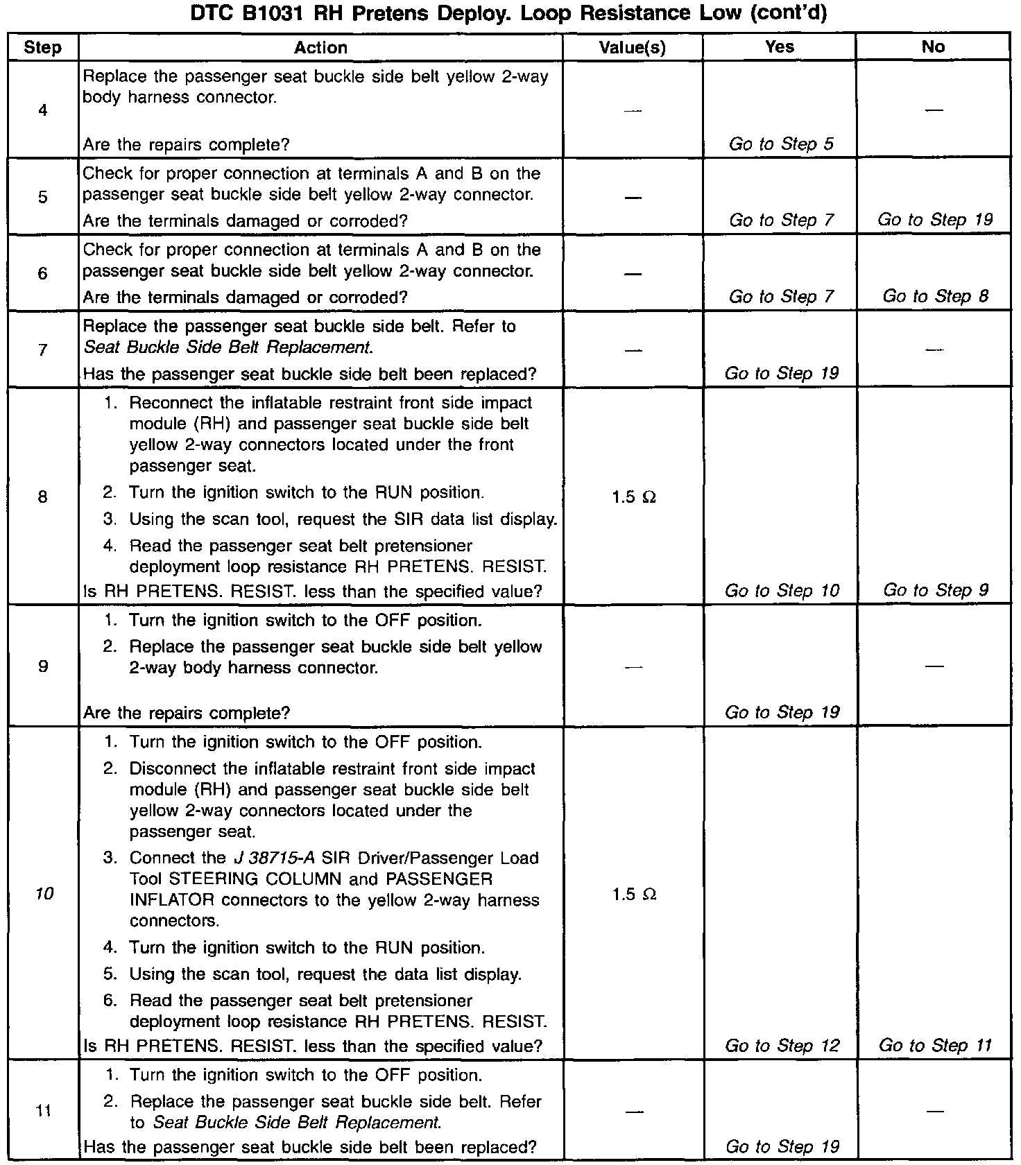 - The passenger seat belt side buckle deployment loop resistance is less than 1.35 ohms. The passenger seat belt pretensioner deployment loop consists of the following components: