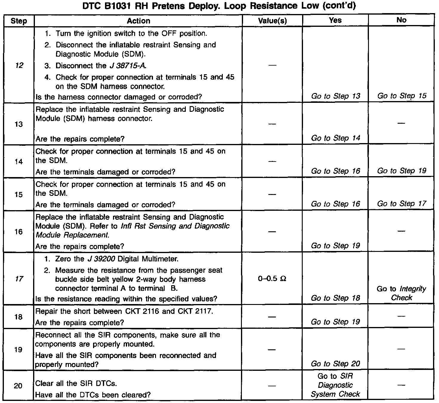- The driver and passenger seat belt pretensioner deployment loops are not shorted to voltage.