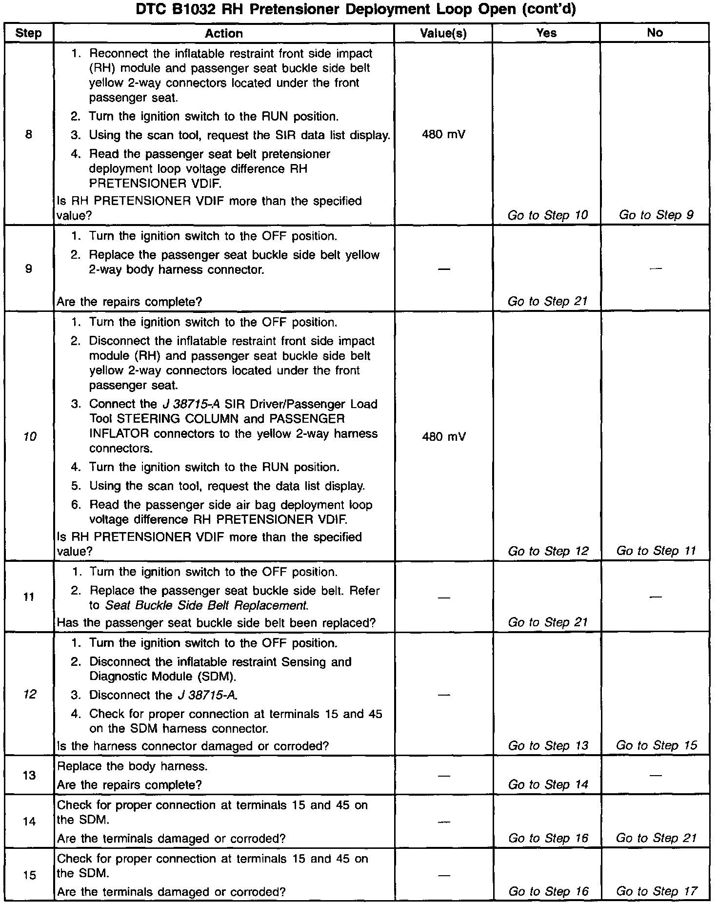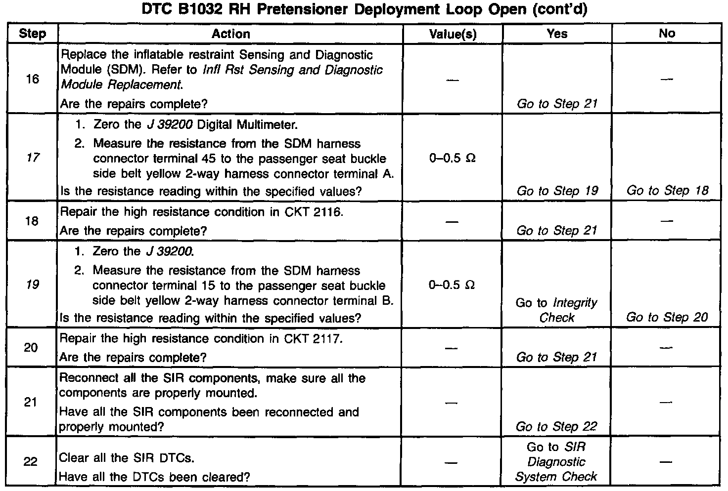 - The passenger seat belt pretensioner deployment loop resistance is more than 500 ohms.
