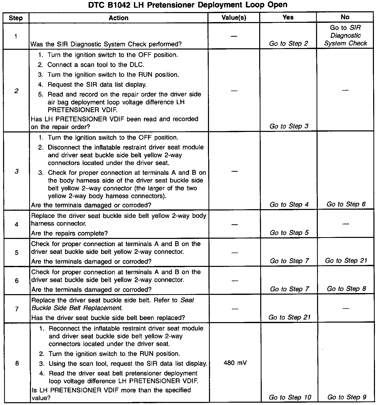 10. This test isolates the malfunction to one side of the driver seat buckle side belt yellow 2-way connector.