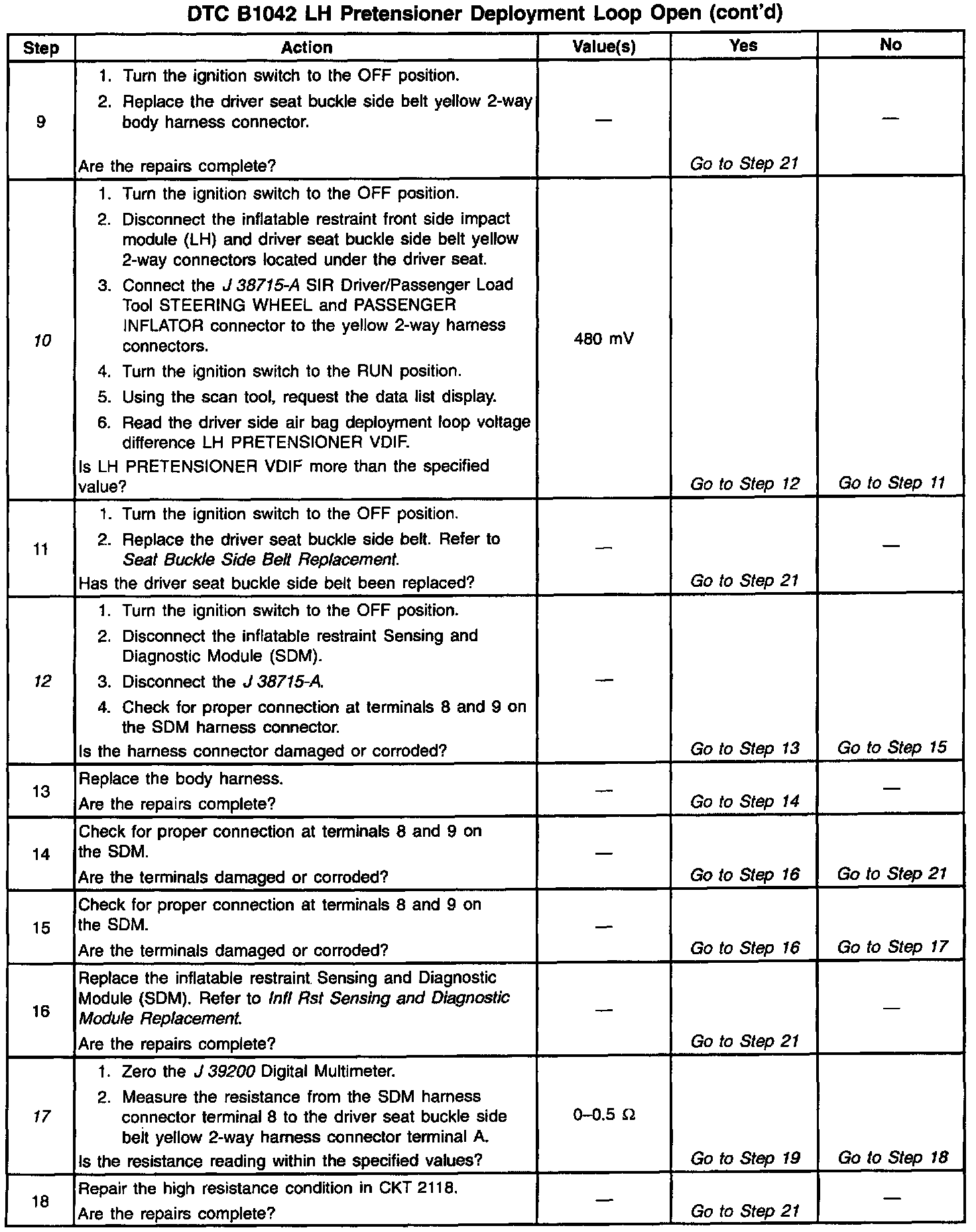 When measurements are requested in this table, use J 39200 Digital Multimeter with the correct terminal adapter from J 35616-A Connector Test Adapter kit. When a check for proper connection is requested, refer to Intermittents and Poor Connections. When a wire, connector or terminal repair is requested, use J 38125-A Terminal Repair Kit and refer to Wiring Repair. Intermittent Problems Service and Repair