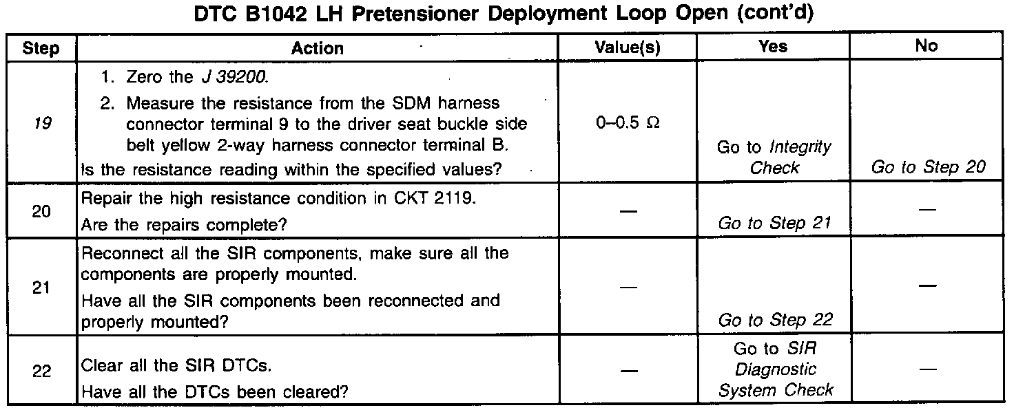 - The driver seat belt pretensioner deployment loop resistance is more than 500 ohms.