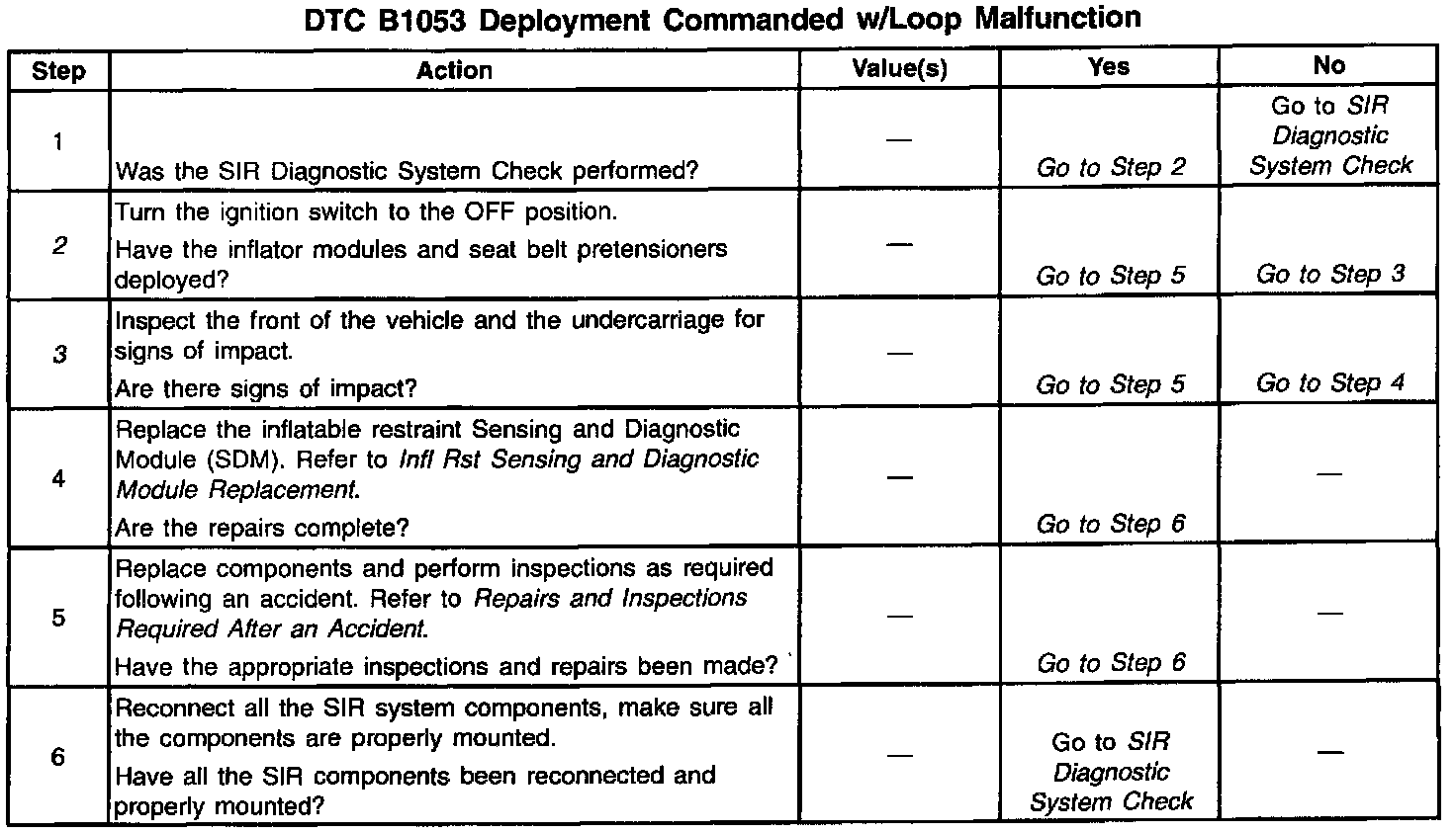 2. If the inflator module(s) has not deployed, DTC B1053 may have set falsely.