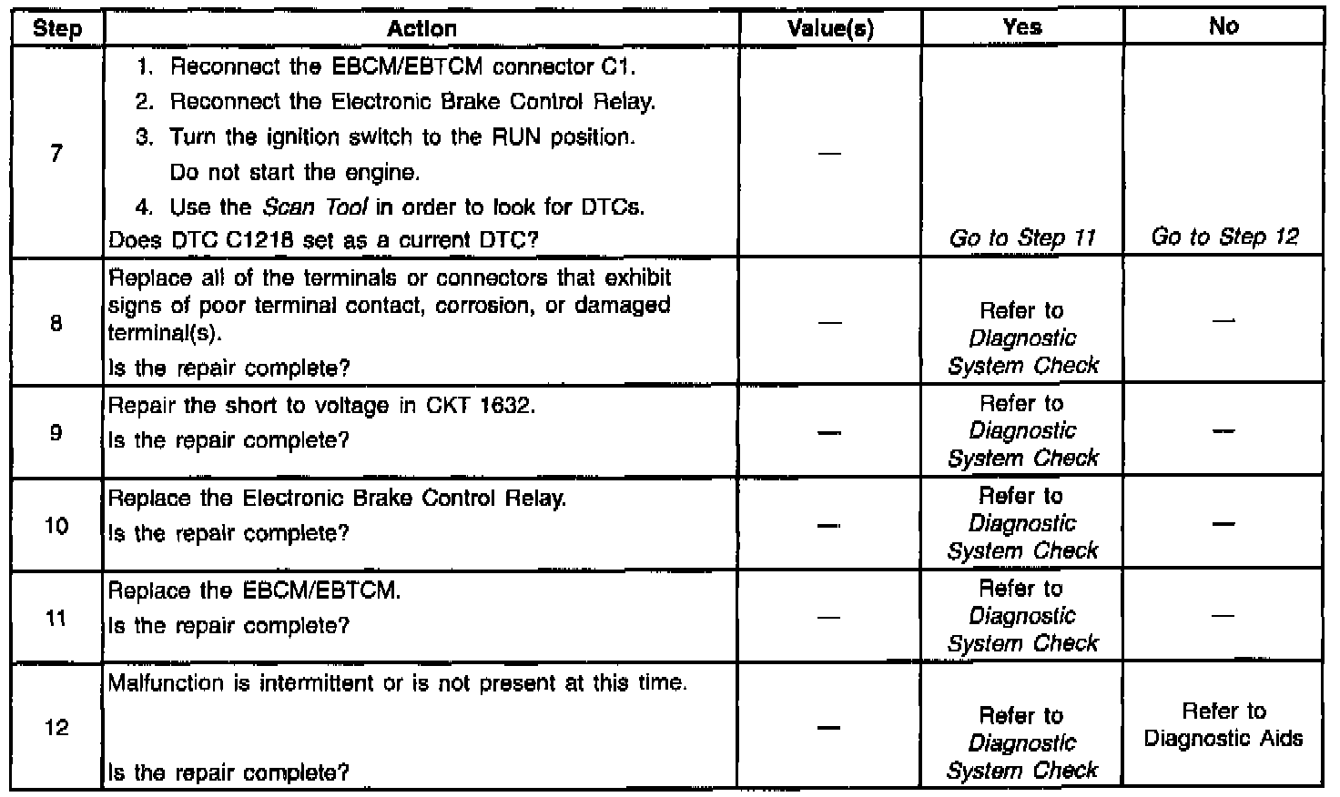 DTC C1218 can set after the EBCM/EBTCM commands the Electronic Brake Control Relay on.