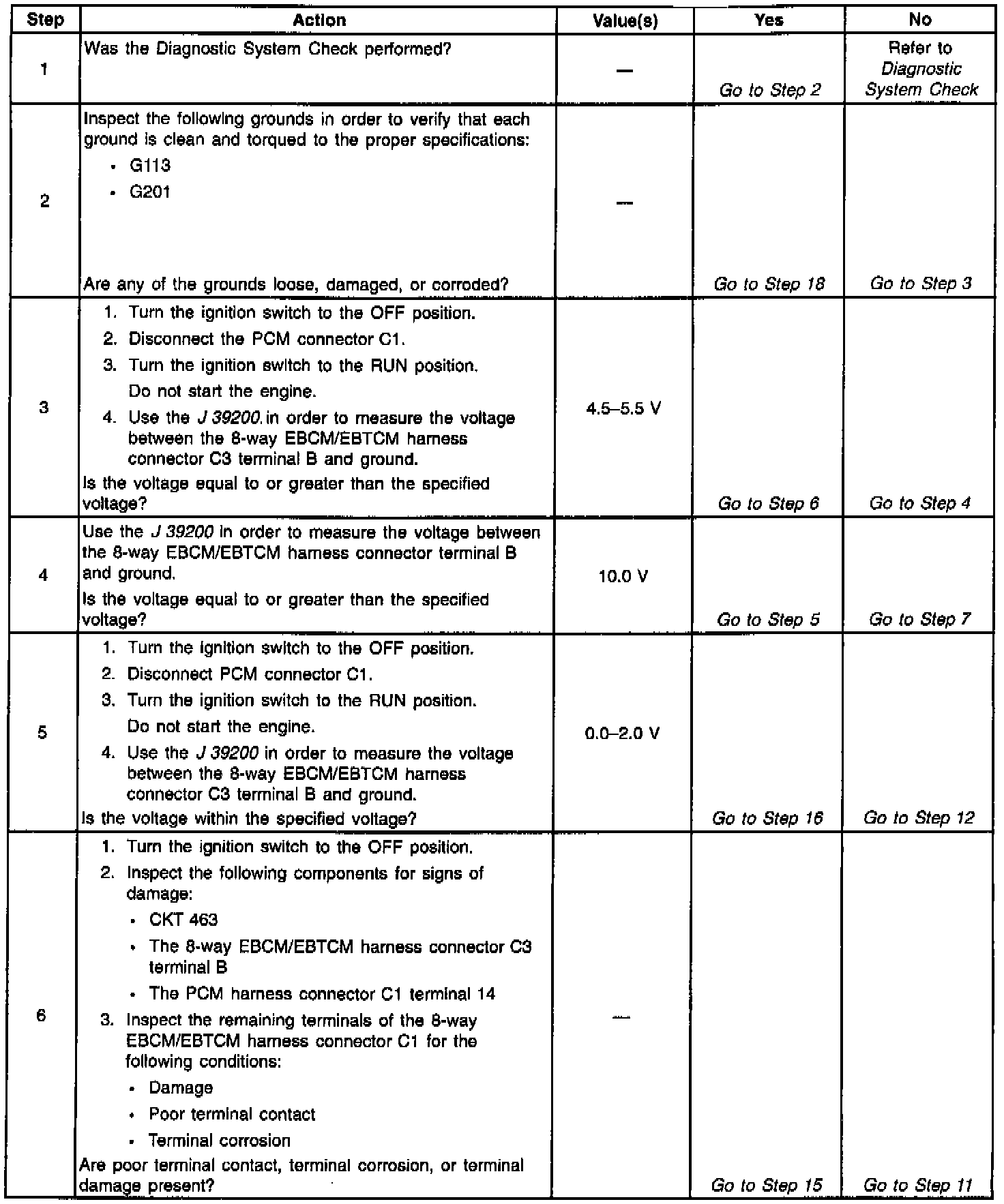 The EBCM/EBTCM sends a torque request to the PCM via a Pulse Width Modulated (PWM) signal requesting the desired torque level for proper traction control system operation (CKT 463). The PCM then provides a delivered torque PWM signal (CKT 464) informing the EBCM/EBTCM how much actual torque the engine produces.