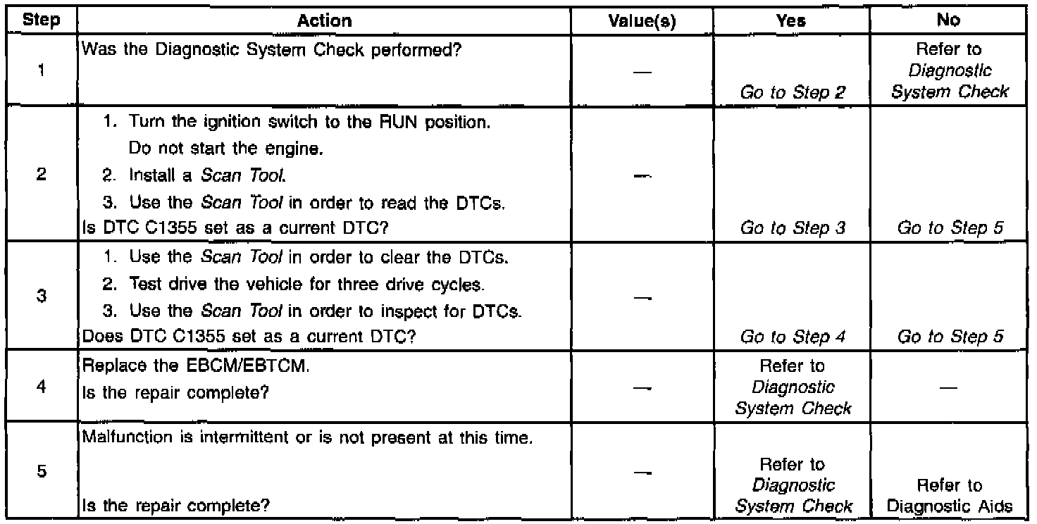 DTC C1355 sets when an internal EBCM/EBTCM malfunction exists.