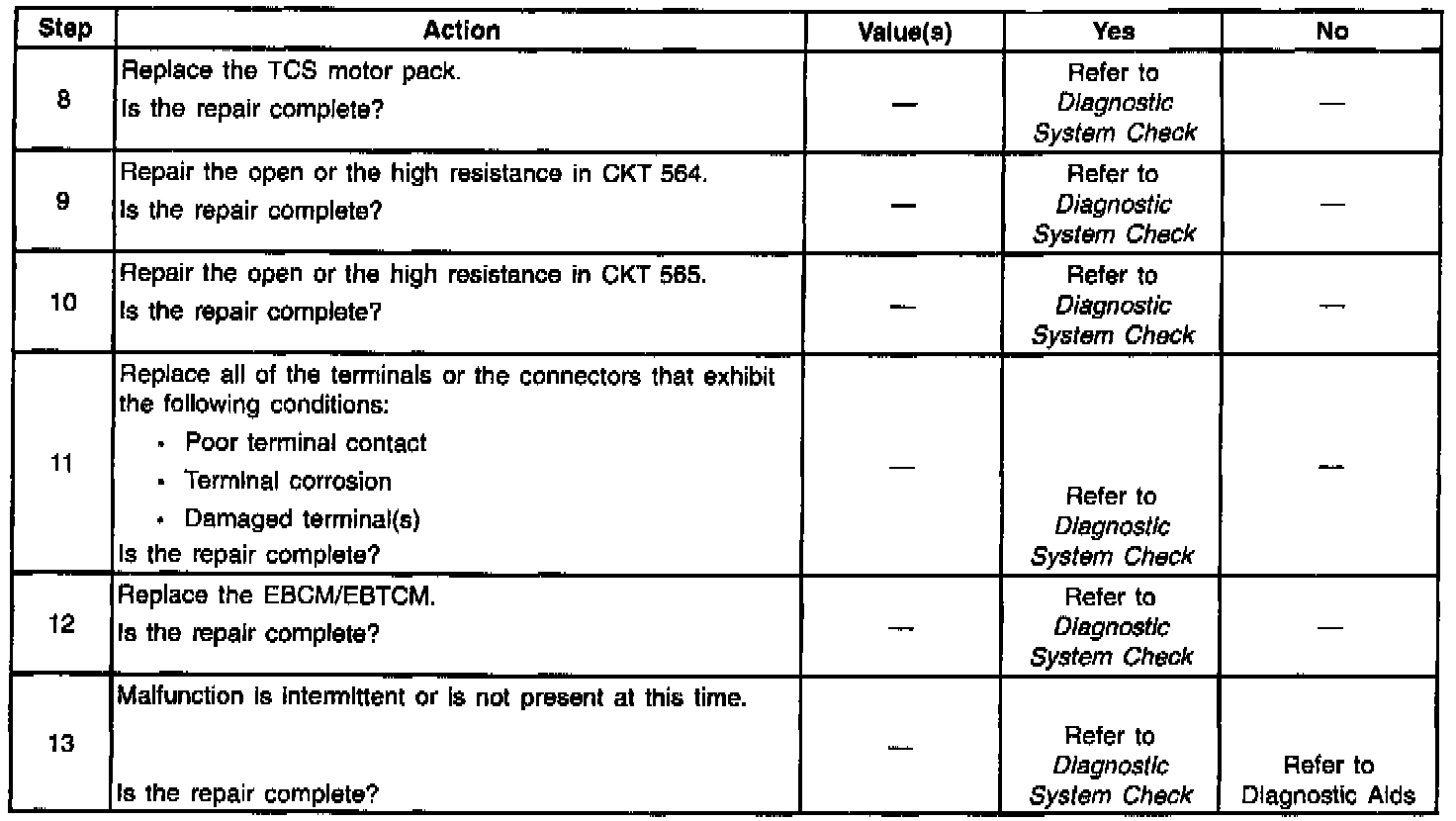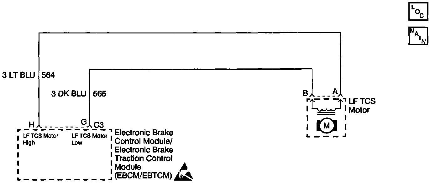 A malfunction exists if the EBCM/EBTCM detects an out of range voltage on either of the left front TCS motor circuits indicating an open circuit.