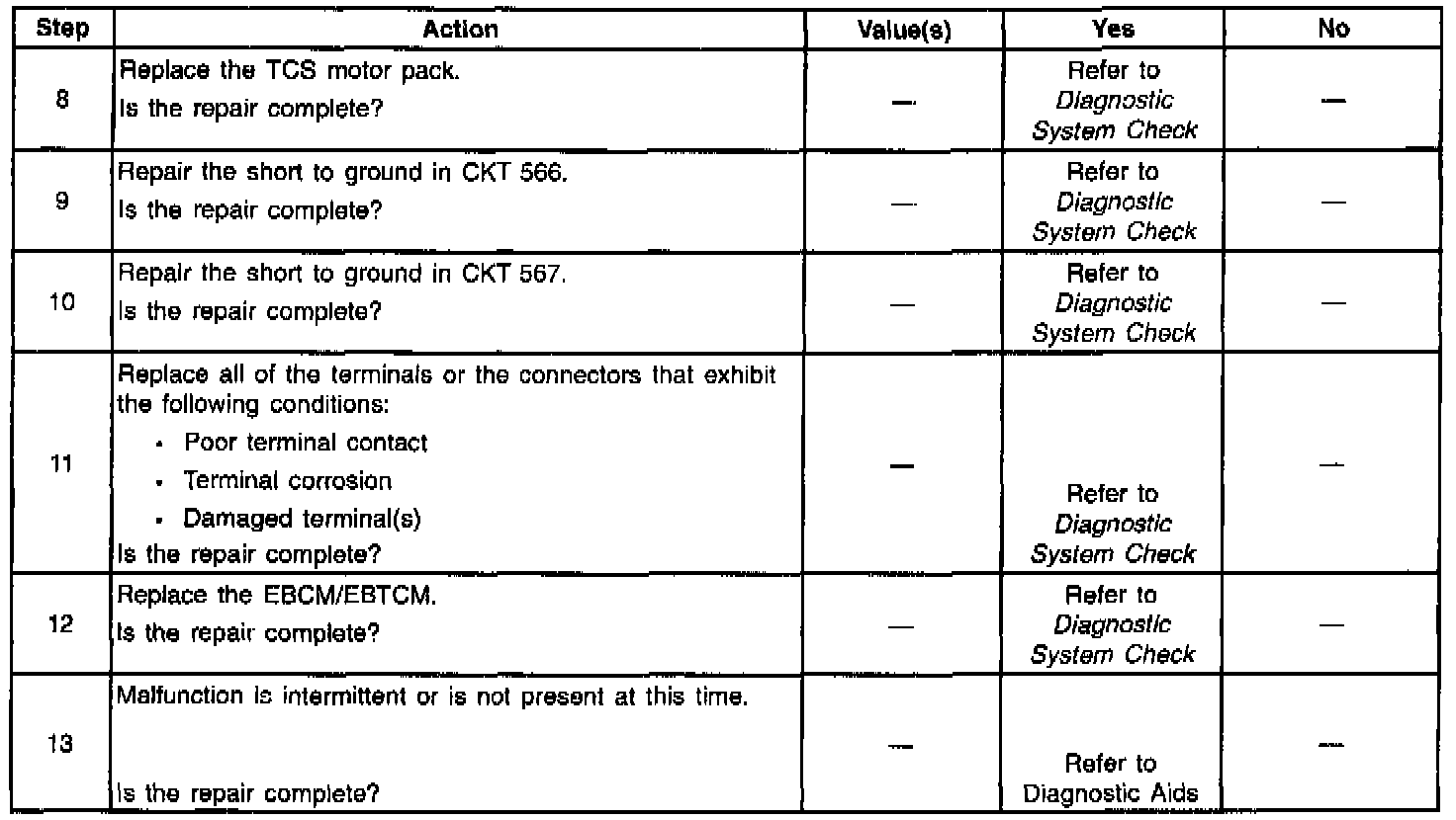 DTC C1362 can set anytime. A malfunction exists if the EBCM/EBTCM detects an out of range voltage on either of the right front TCS motor circuits indicating a short to ground.