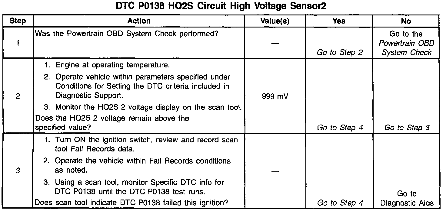 - Fuel pressure. An excessively rich fuel mixture can cause a DTC P0138 to be set. Refer to Refer to Fuel System Pressure Test.
