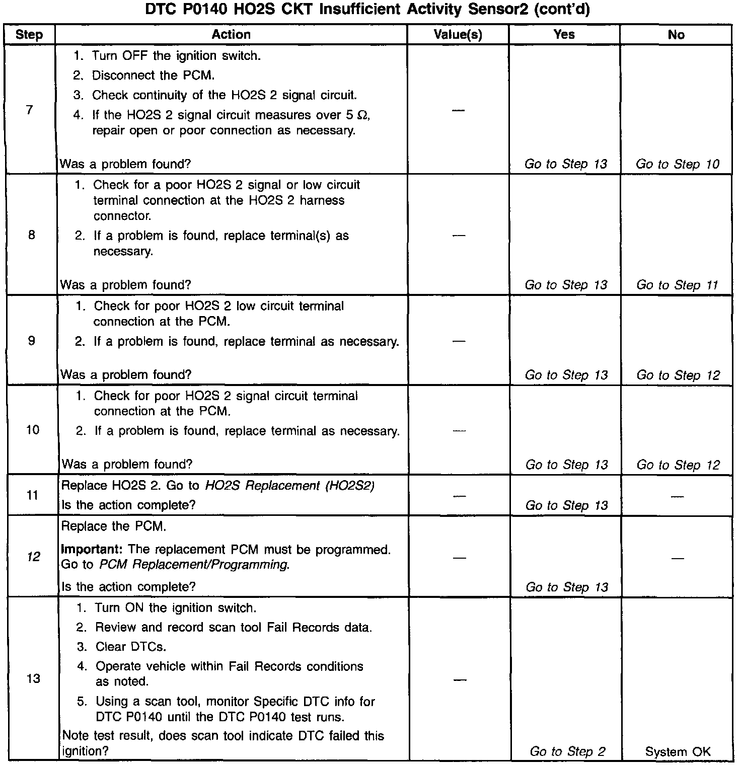 3. If the DTC P0140 test passes while the Fail Records conditions are being duplicated, an intermittent condition is indicated. Reviewing the Fail Records vehicle mileage since the diagnostic test last tailed may help determine how often the condition that caused the DTC to be set occurs. This may assist in diagnosing the condition.