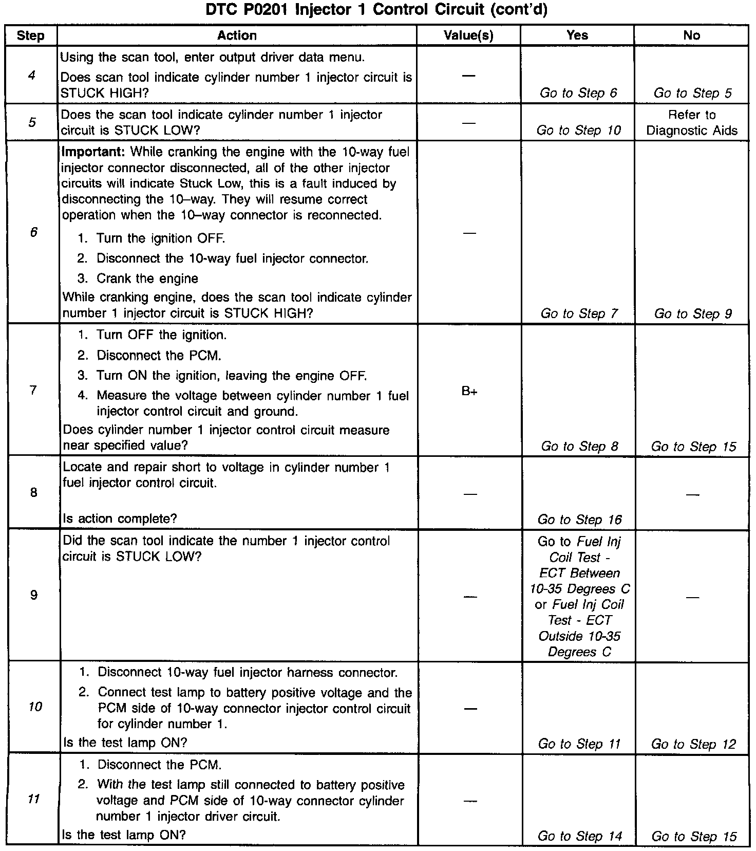 5. If the scan tool indicates STUCK LOW there is an open or a short to ground on the fuel injector driver circuit.