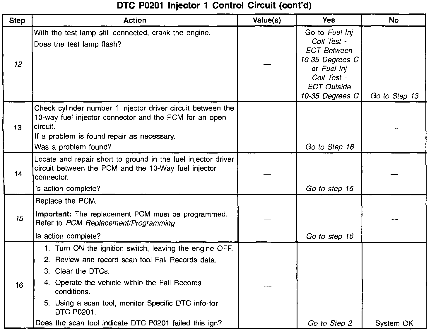11. The fuel injector in this circuit will need to be checked after the short to ground is repaired or after the PCM is replaced.
