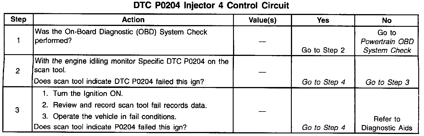 The PCM controls the fuel injectors by using an ignition feed driver and ground circuit within the PCM. The driver has the ability to detect an electrical malfunction in the ignition feed or ground circuit. If an electrical malfunction occurs in the fuel injector circuit for engine cylinder #4, the ignition feed driver signals the PCM to set DTC P0204.