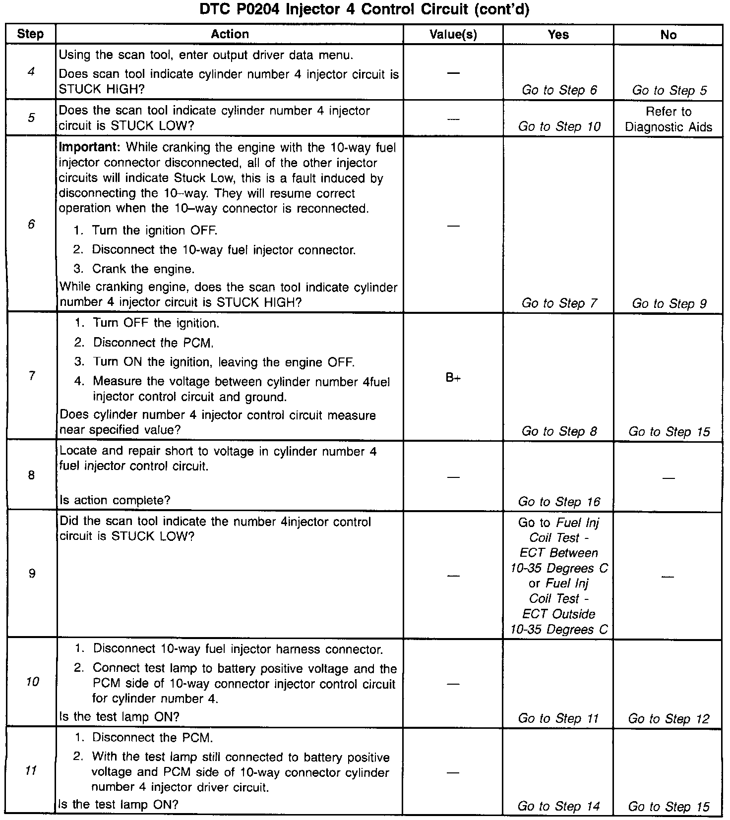 5. If the scan tool indicates STUCK LOW there is an open or a short to ground on the fuel injector driver circuit.
