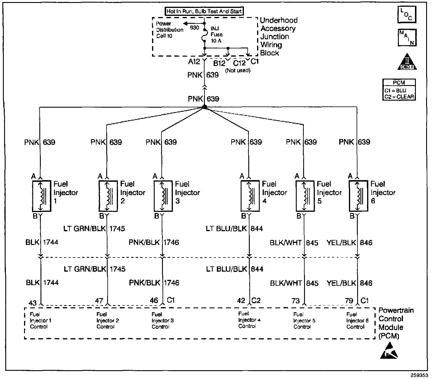 6. When the 10-way fuel injector connector is disconnected, DTCs P0107 and P1107 will be set. There DTCs should be disregarded.