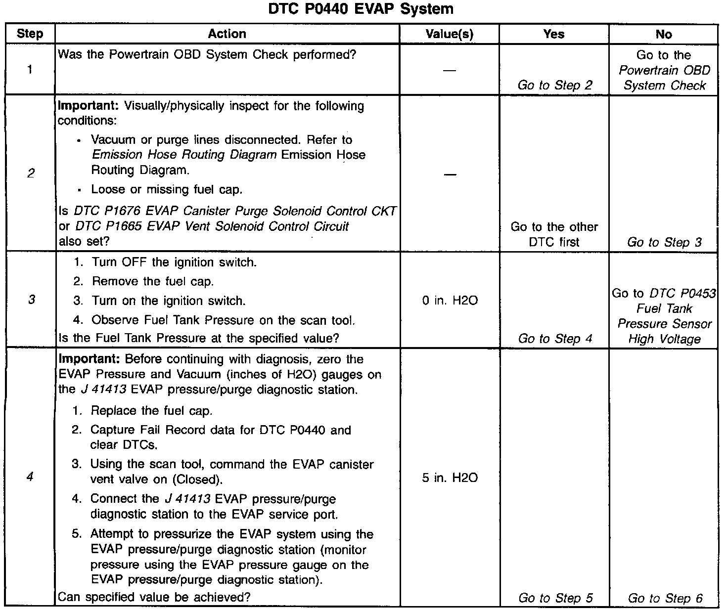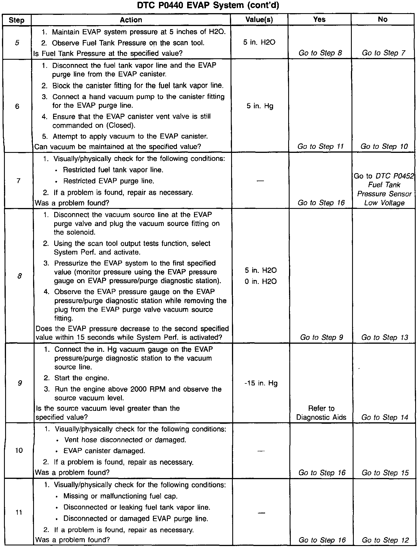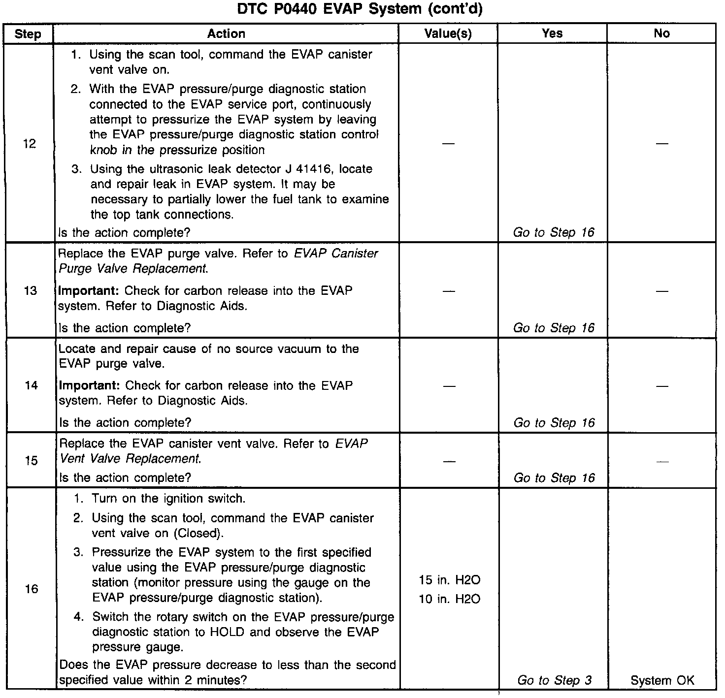 12. Proceed with the DTC P0440 diagnostic table.