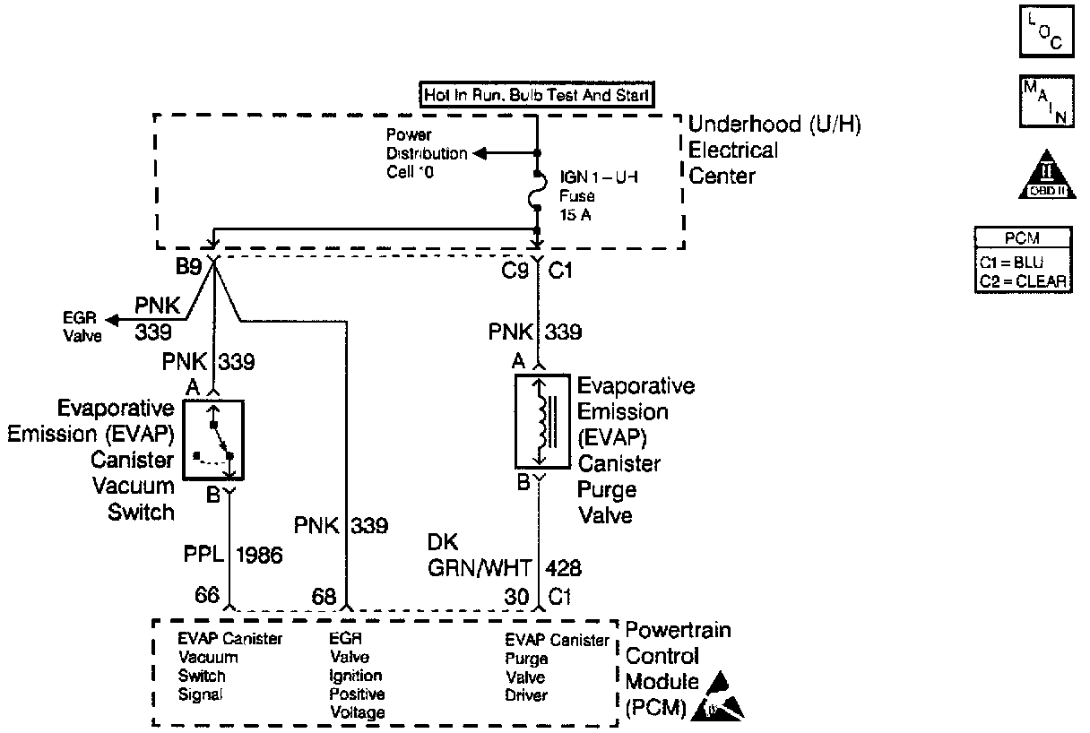 - EVAP vacuum switch remains closed (12 volts signal at the PCM).