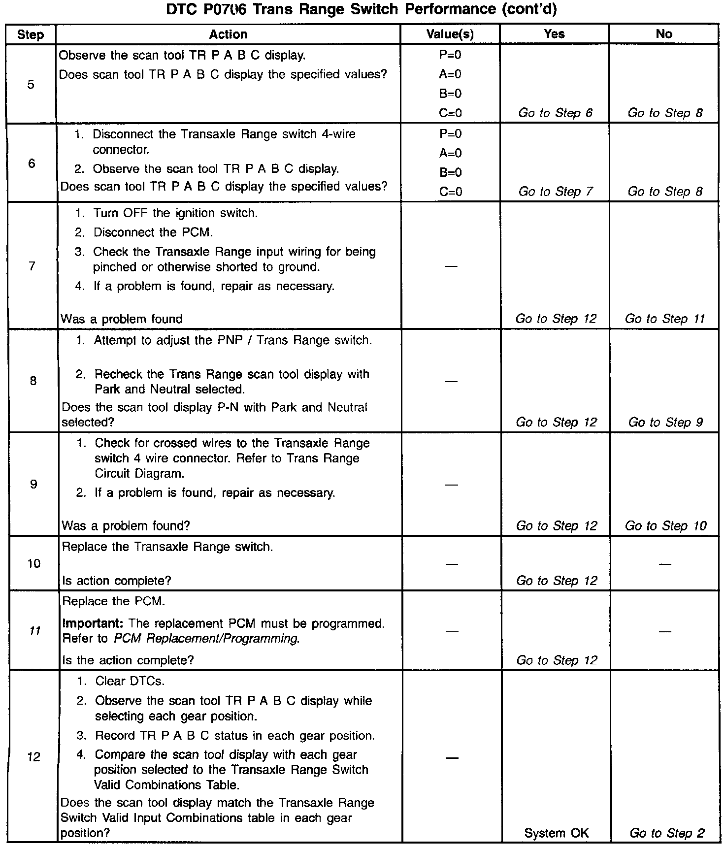 DTC P0706 set indicates a misadjusted Park Neutral Position / Transaxle Range Switch. For adjustment procedure, refer to Transaxle PNP Switch/Range Switch.