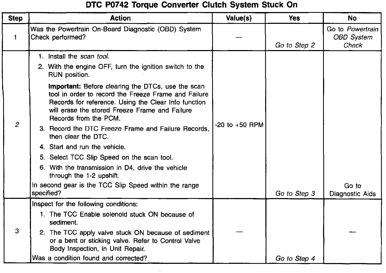 - The TCC slip speed is -20 to +50 RPM, for 3 occurrences of greater than 5 seconds.