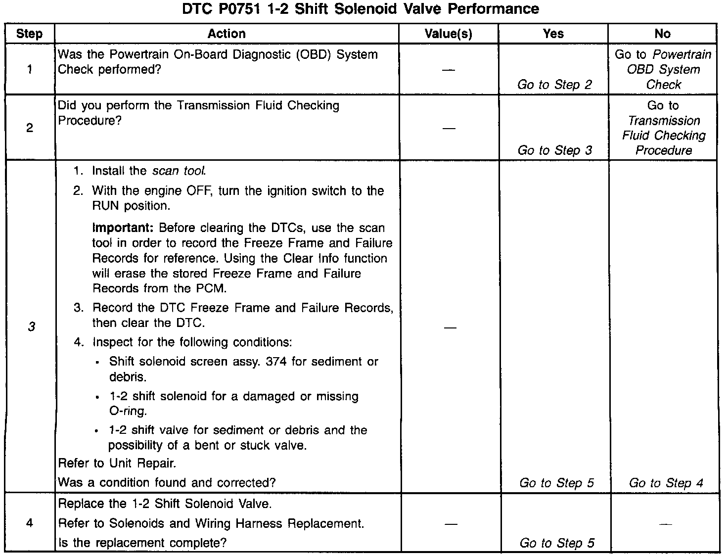 - No 1-2 solenoid electrical DTC P0753.