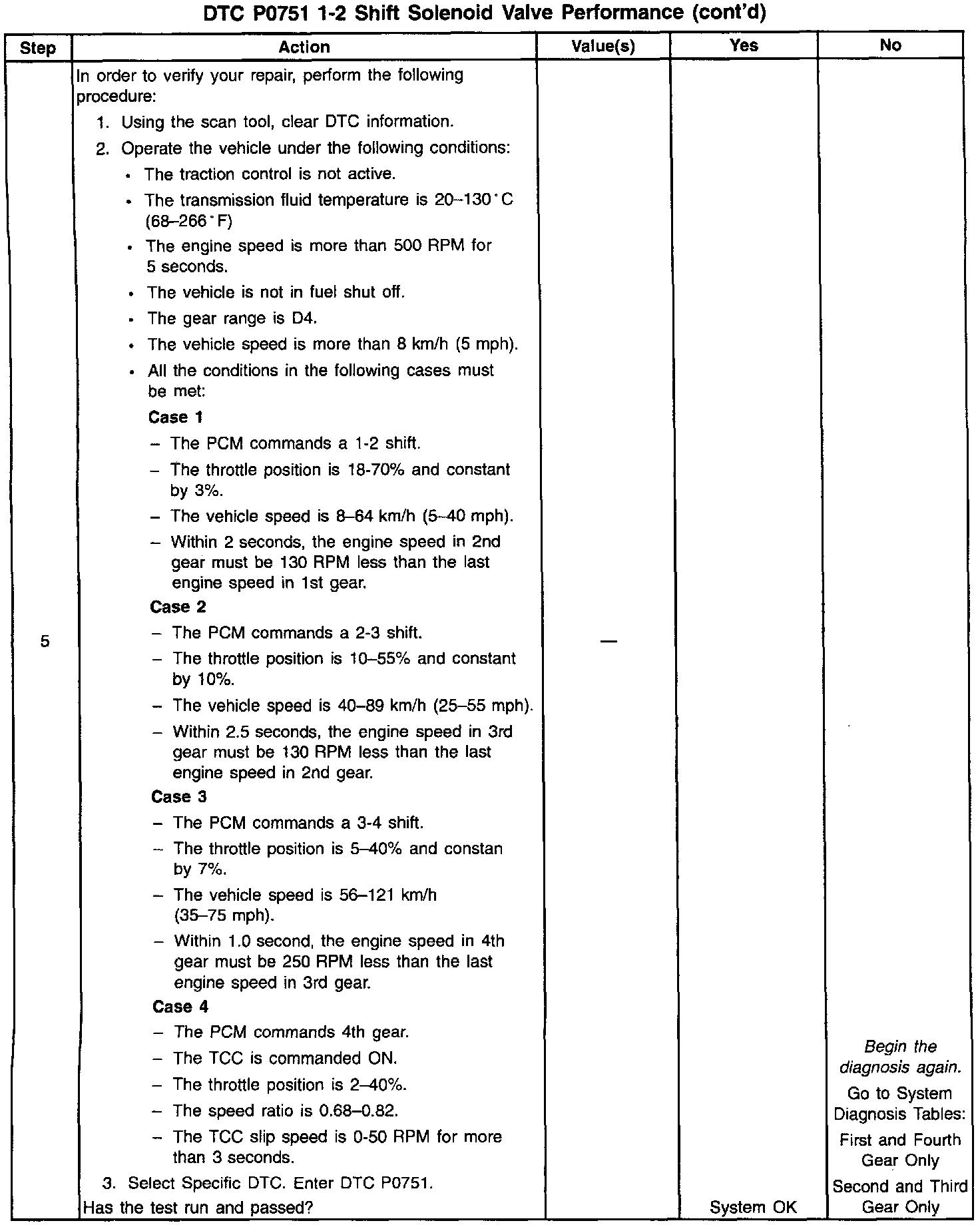 When the PCM detects a 2-2-3-3 or a 1-1-4-4 only shift pattern, then DTC P0751 sets. DTC P0751 is a type A DTC.