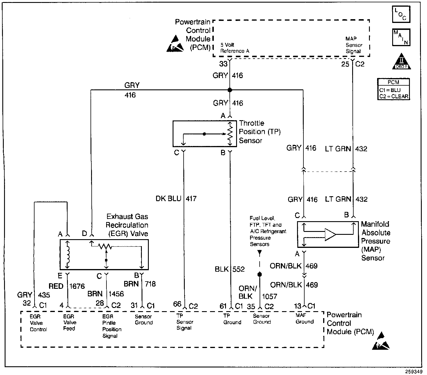 - Damaged harness. Inspect the wiring harness for damage. If the harness appears to be OK, observe the throttle position display on the scan tool while moving connectors and wiring harnesses related to the TP sensor. A change in the display will indicate the location of the fault.