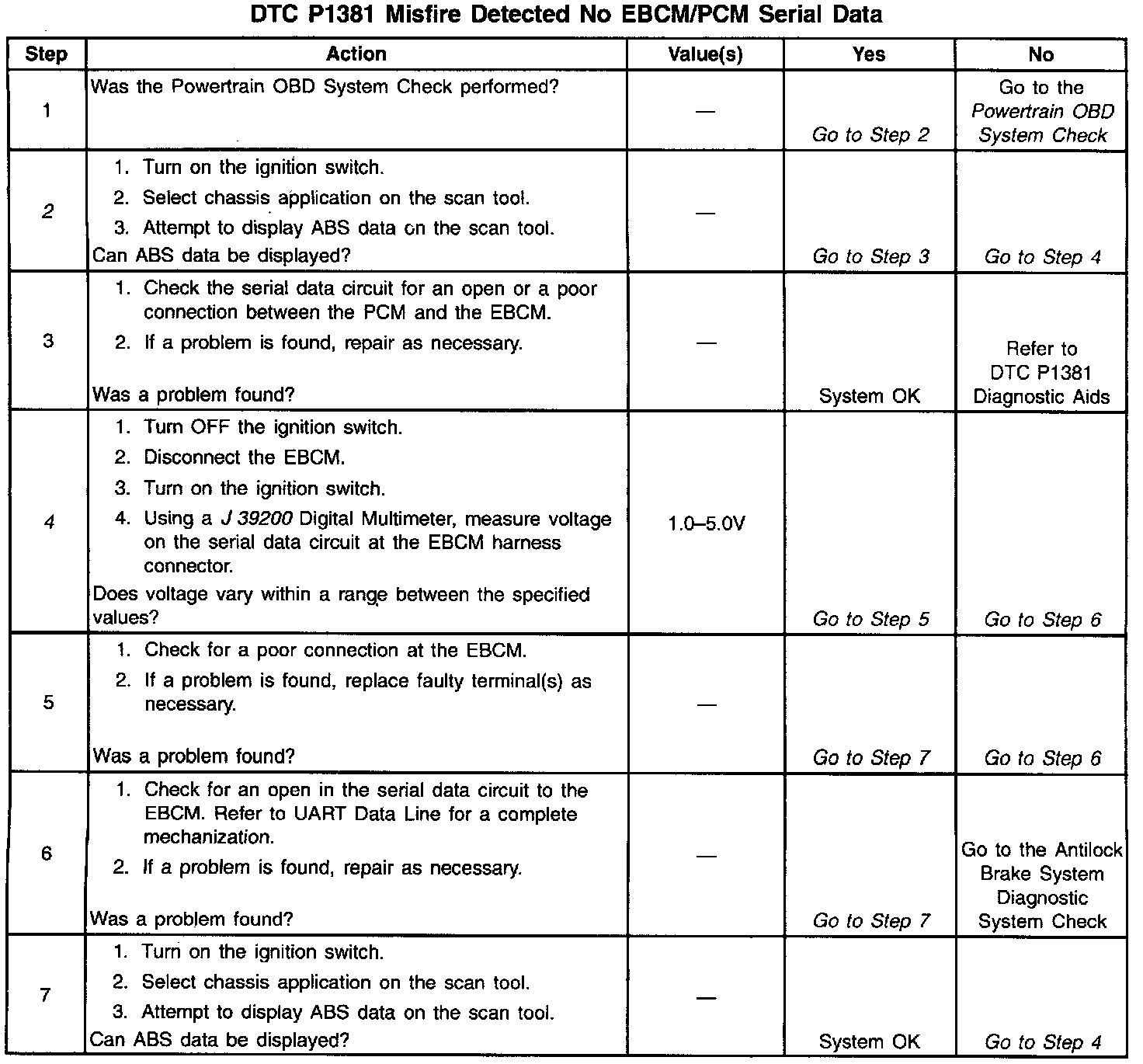 4. Checks the serial data circuit at the EBCM/EBTCM for correct voltage.