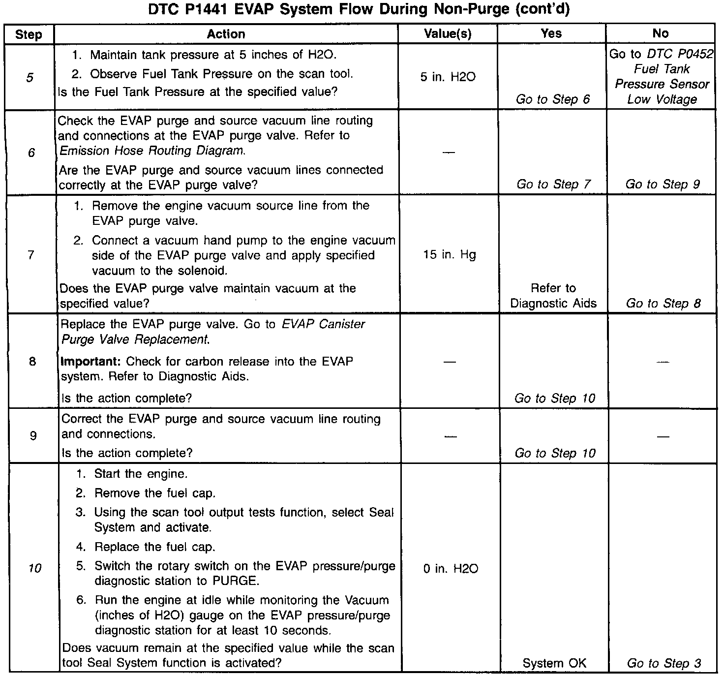 2. If an EVAP purge valve electrical malfunction is present, the purge system will not operate correctly. Repairing the electrical malfunction will very likely correct the condition that set DTC P1441.