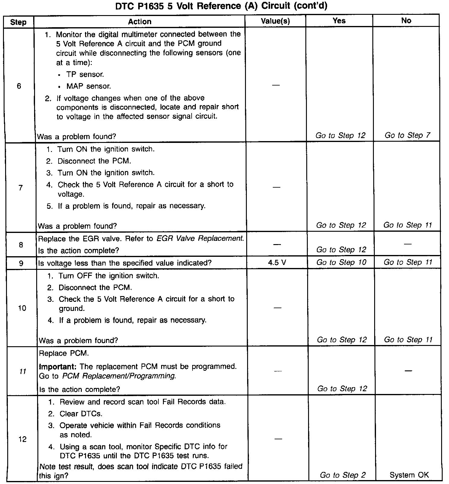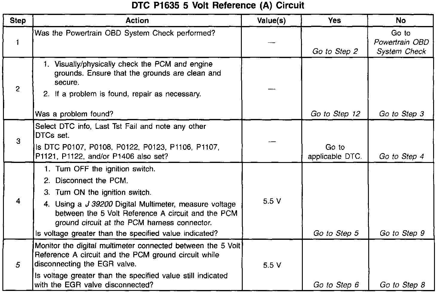- The EGR Valve Pintle Position sensor. The PCM monitors the voltage on the 5 Volt Reference A circuit. If the voltage is out of tolerance, the PCM will set DTC P1635.