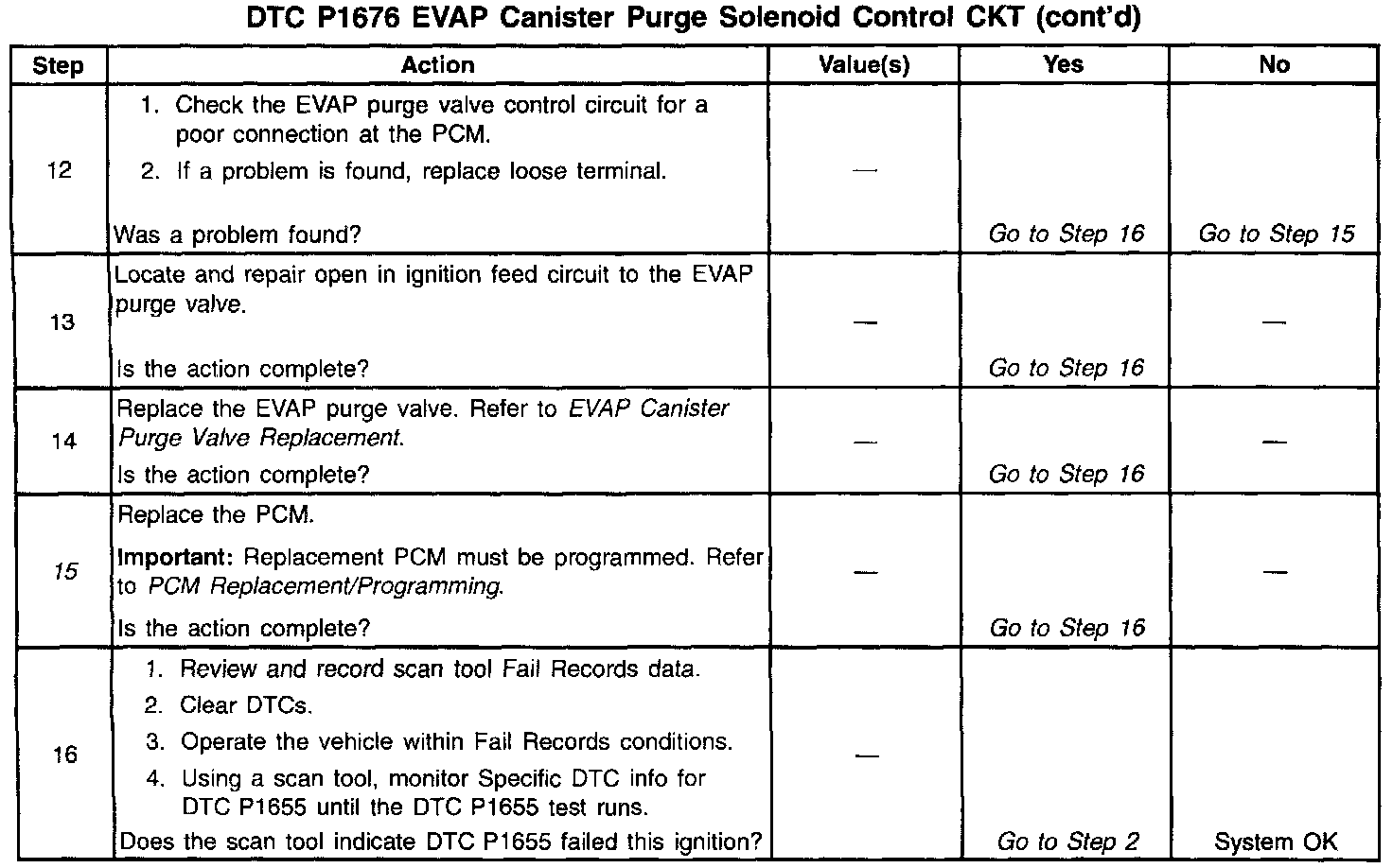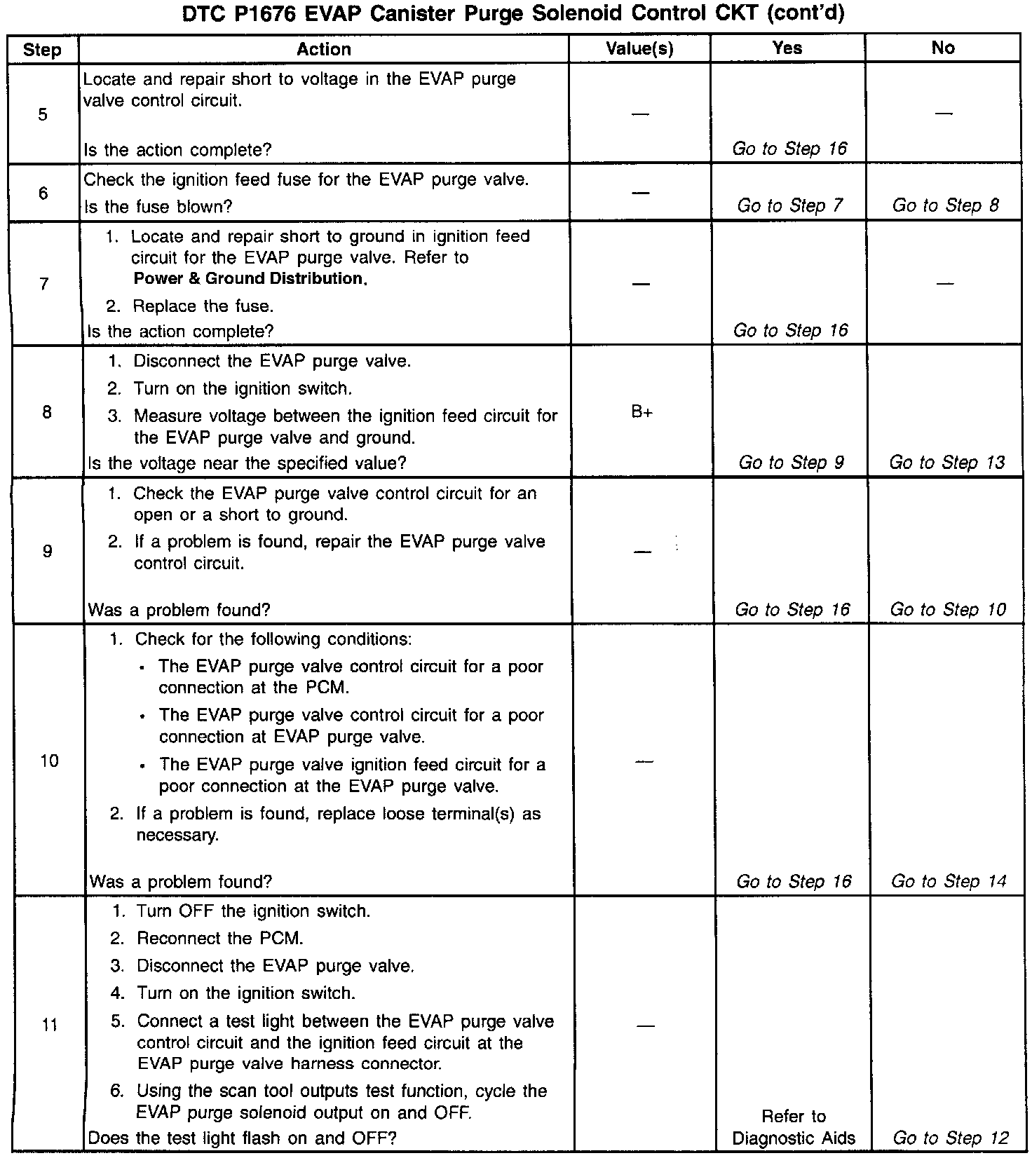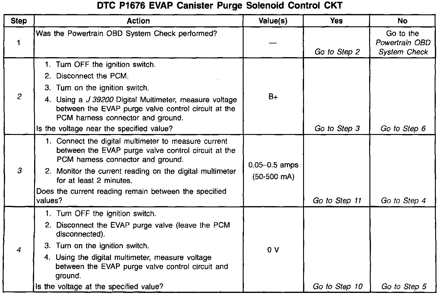 Output Driver Modules (ODMs) are used by the PCM to turn ON many of the current-driven devices that are needed to control various engine and Transaxle functions. Each ODM is capable of controlling up to 7 separate outputs by applying ground to the device which the PCM is commanding ON. DTC P1676 set indicates an improper voltage level has been detected on the output circuit which controls the EVAP purge solenoid.