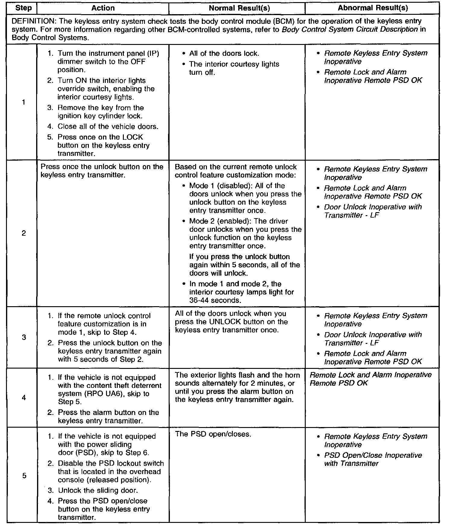 System Check - Keyless Entry