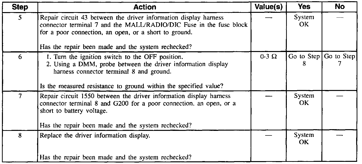 Table2: Driver Information Display Is Inoperative (Part 2 Of 2):