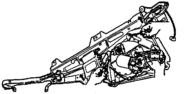 3. Position the sliding door center roller bracket at the front of the track. Ensure that the bracket is 25 mm (1 in) from the forward radius and that the cable tension slot is accessible in the window located on the PSD motor clutch assembly.