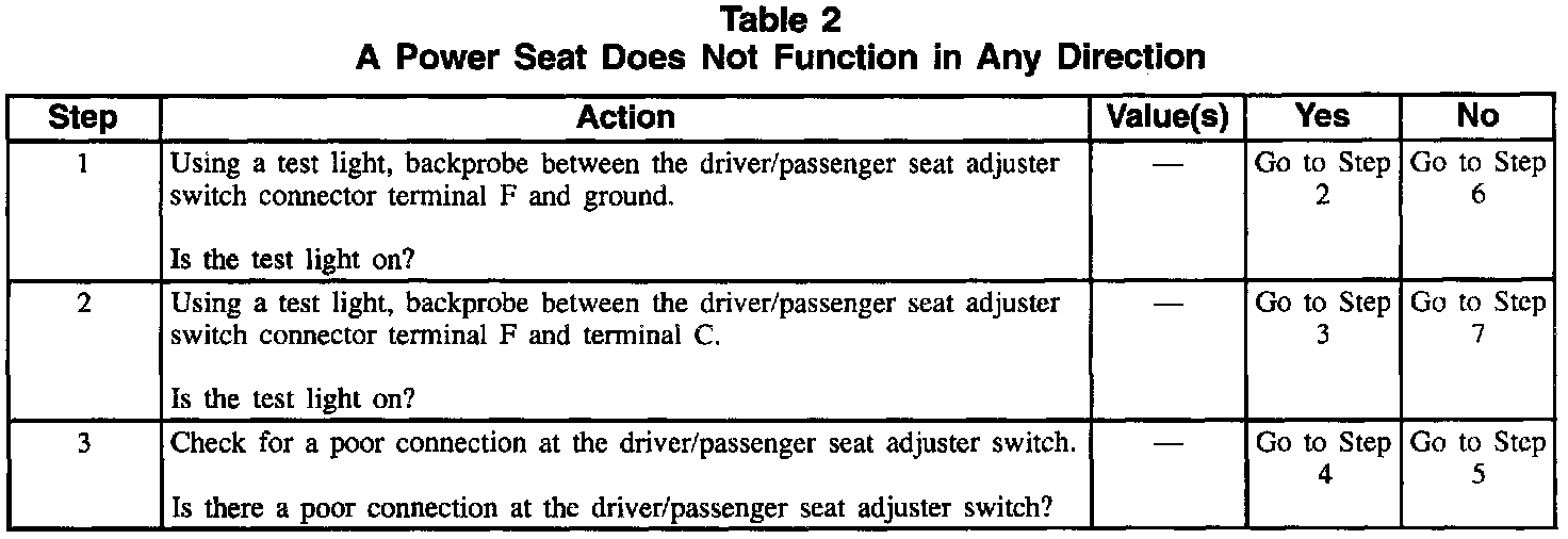 Table 2 A Power Seat Does Not Function In Any Direction