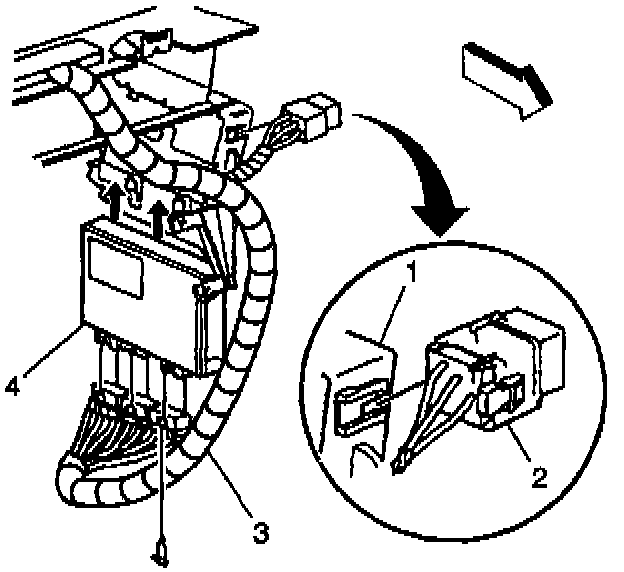 2. Release the electronic brake control relay (2) from the EBCM/EBTCM bracket (1).