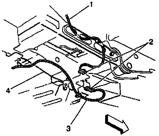 1. Install the right rear wheel speed sensor harness (1) onto the vehicle.
