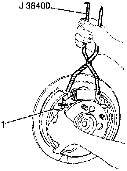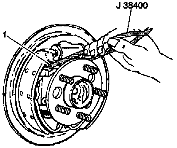 10.2. Use the J 38400 in order to spread the brake shoes. Manipulate the adjuster actuator (1) into position.
