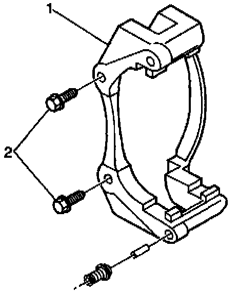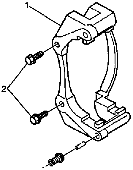 3. Install the caliper bracket (1) with the bracket bolts (2).