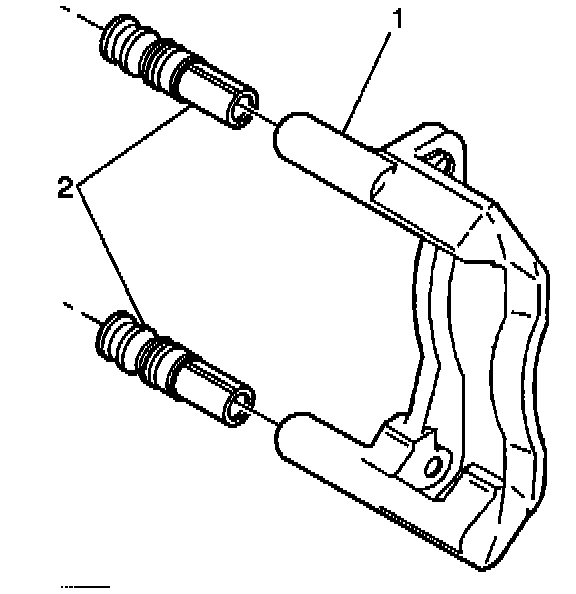 2. Remove the caliper bracket bolts (2).