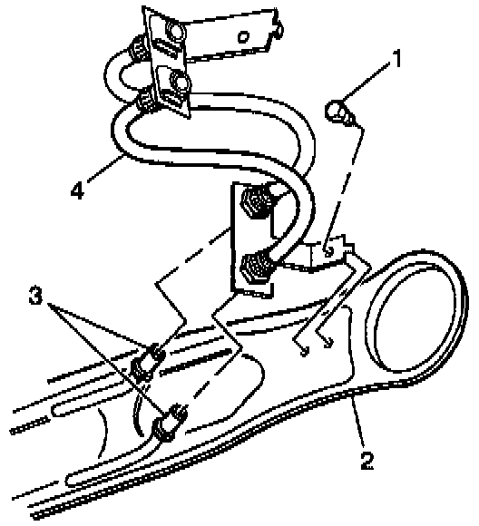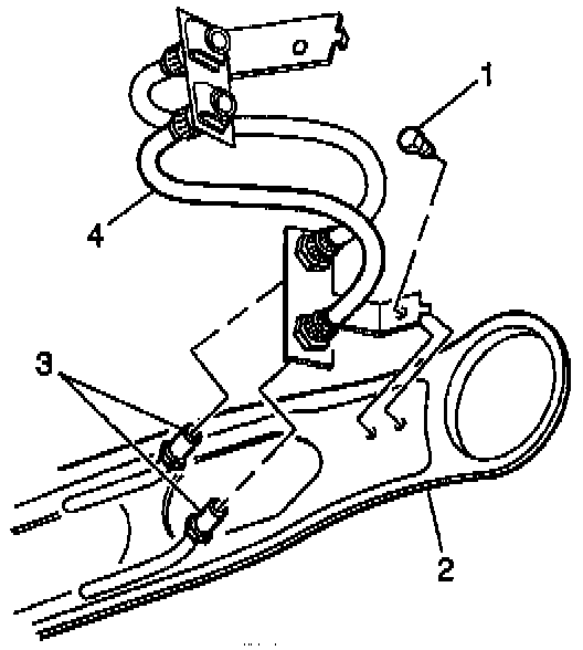 4. Remove the retainers from the brake hose (4) at the brackets.
