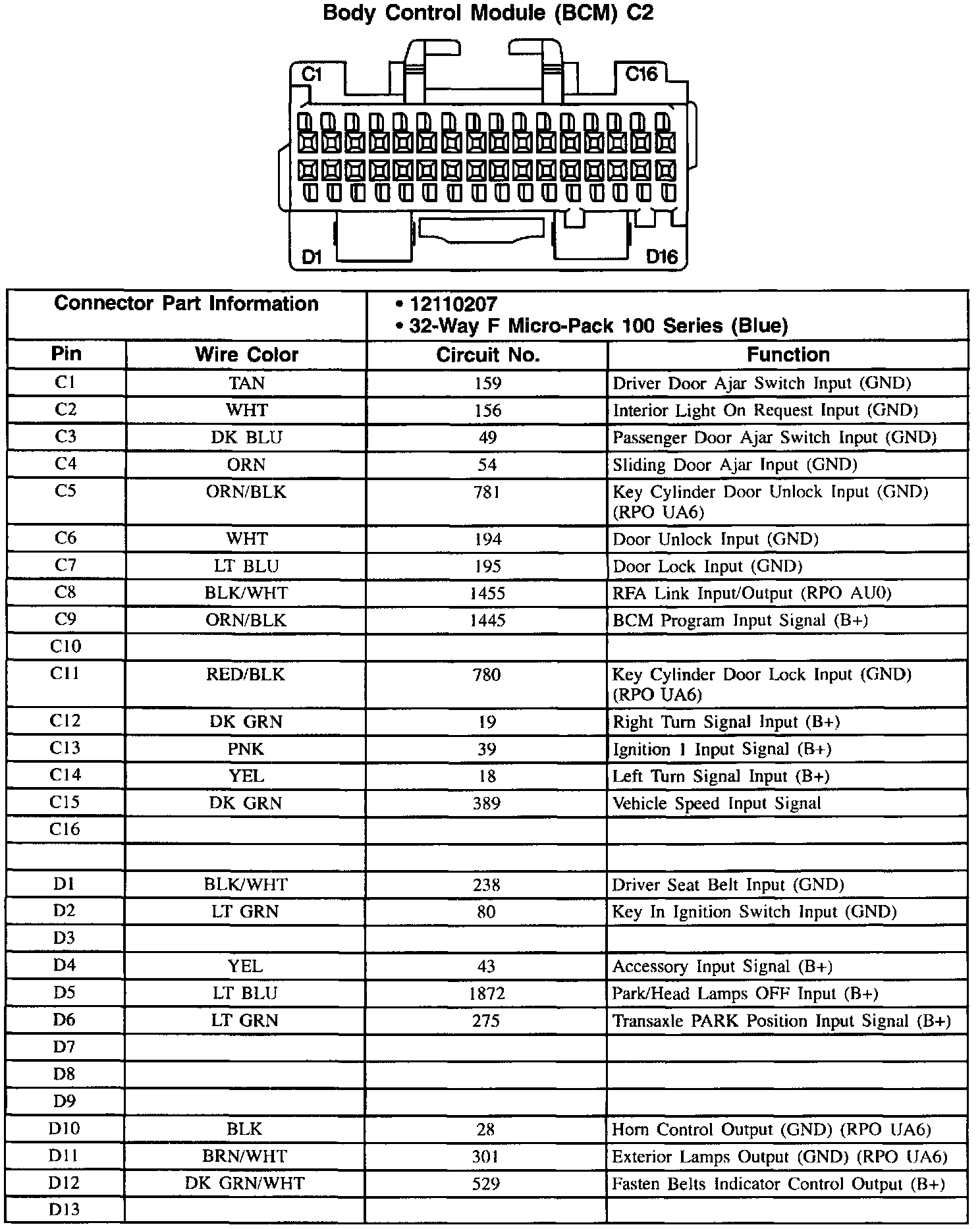 Body Control Module (BCM) C2 (Part 2 Of 2):
