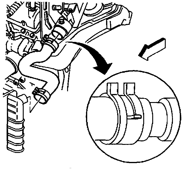 3. Disconnect the inlet hose from the radiator using the J 38185.