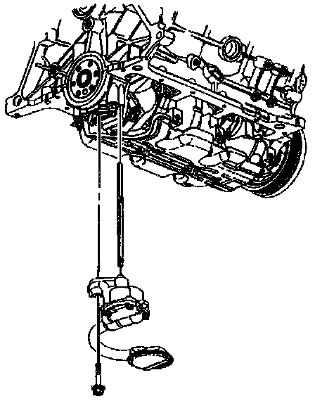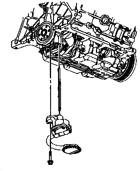 2. Remove the bolt attaching the oil pump to the rear crankshaft bearing cap.