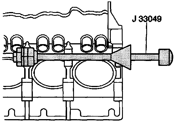 ^ TOOLS REQUIRED- J 33049 Camshaft Bearing Remover/Installer