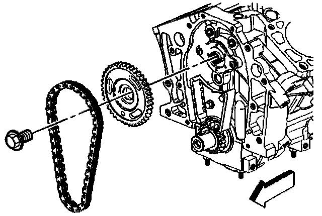 9. Draw the camshaft sprocket onto the camshaft using the mounting bolt.